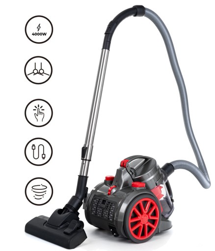 Energooszczędny | Technologia MultiCyclone | 15 Elementów | Turboszczotka | Cichy | Filtr HEPA | 10m zasięgu | Bezworkowy | Gumowa rączka | PeakPower 4000 W
