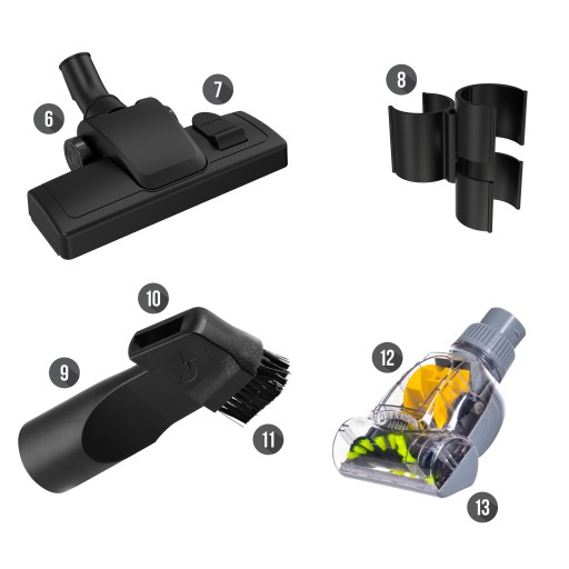 • Szeroki pakiet – aż 15 elementów, a w zestawie min. turboszczotka, dodatkowa ssawka szczelinowa