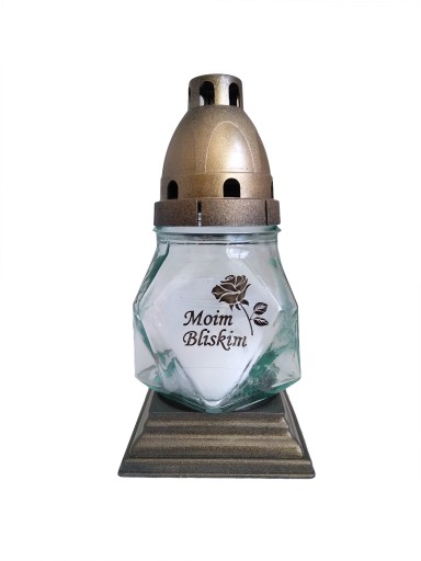 Klasyczny szklany znicz z pięknie zdobioną różyczką. W paczce znajduje się komplet oryginalnie zapakowanych 12 sztuk. Znicz posiada wkład parafinowy wymienny. Piękny znicz jest symbolem pamięci, który odda hołd zmarłym.